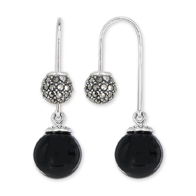 Marcasite Ball & Black Onyx Drop Earring